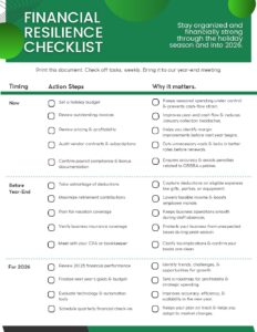 Download the Financial Resilience Checklist to help you stay organized and financially strong throughout the holiday season and into 2026.